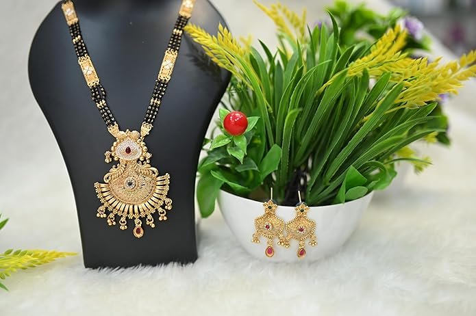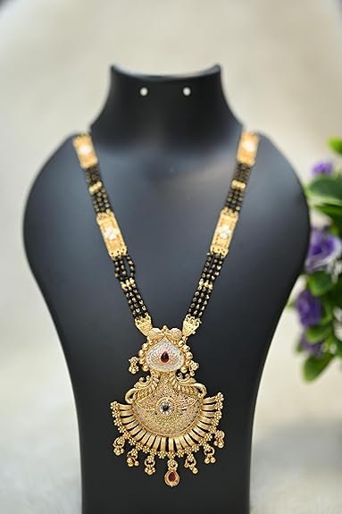Be the first to review “Traditional Gold-Plated Temple Design Mangalsutra with Black Beaded Chain and Intricate Pendant for Women” Cancel reply